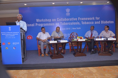 The World Health Organization in collaboration with the Ministry of Health & Family Welfare organized a National Workshop on the Collaborative Framework for National Programmes on Tuberculosis, Tobacco and Diabetes on 23-24 June 2015 in New Delhi. The workshop provided a platform to develop joint implementation strategies to address comorbidities of tuberculosis and noncommunicable diseases with a focus on diabetes and tobacco.