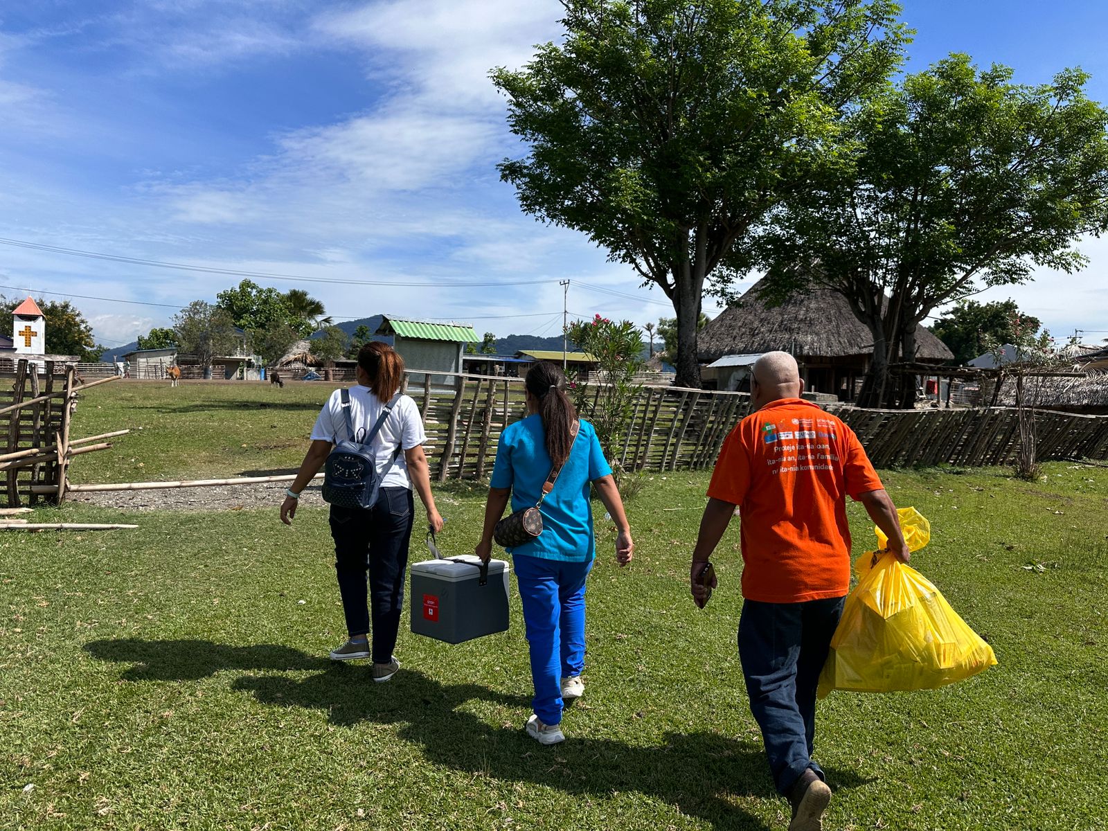 Armed with the necessary shots in a vaccine carrier, health workers from the Ministry of Health and immunization consultants appointed by the World Health Organization (WHO) traverse difficult terrains to reach communities in remotest parts of Timor-Leste to ensure that children like Natazu are not left behind.